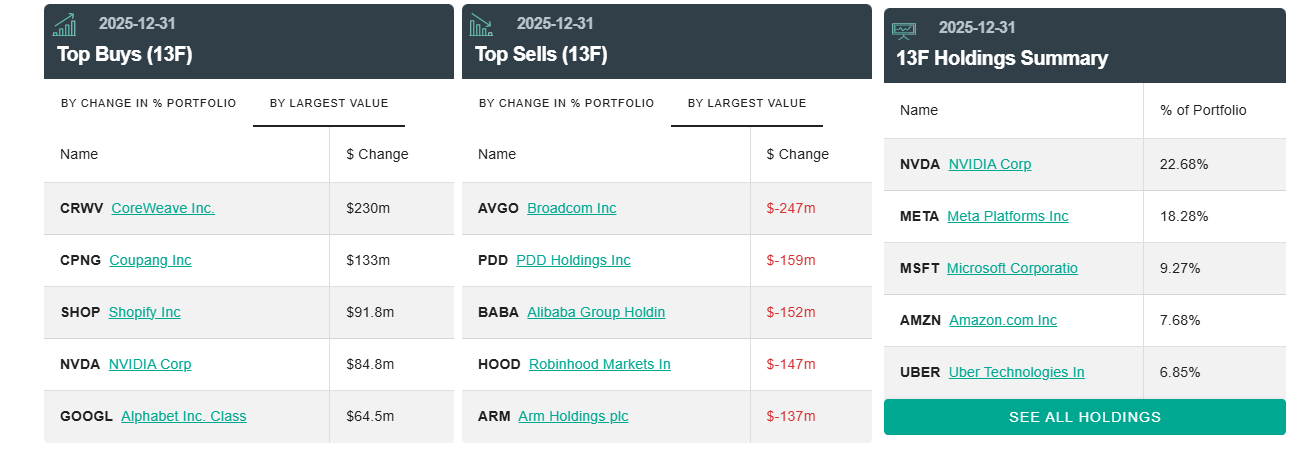 While selling Broadcom, Alibaba and Arm, Altimeter opened a fresh stake in CoreWeave (CRWV), buying 3,213,230 shares worth $230.099 million.