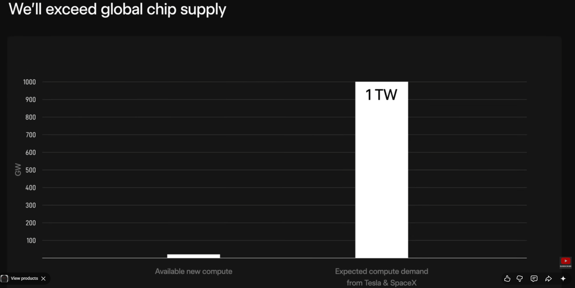 “So I think it’s probably 100 to 200 gigawatts a year of terrestrial chips, and probably on the order of a terawatt of chips in space, just because of power constraints on the ground, is probably how it ends up. Space has the advantage that it’s always sunny. It’s very nice.”
