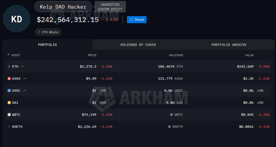 Data from the deanonymizing blockchain intelligence tool Arkham shows that the hacker currently holds over $242.564 million in crypto and has been actively moving coins to the decentralized exchange Uniswap, where the tokens could be sold on the open market.
