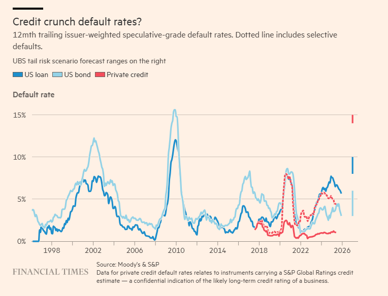 Dimon’s warning comes as fellow banking giant UBS flags rising risks in the $1.8 trillion private credit market. In a research note reported by the Financial Times, UBS credit strategist Matthew Mish warns that severe AI disruption could trigger meaningful defaults in private credit, as well as in US high yield bonds and US leveraged loans.