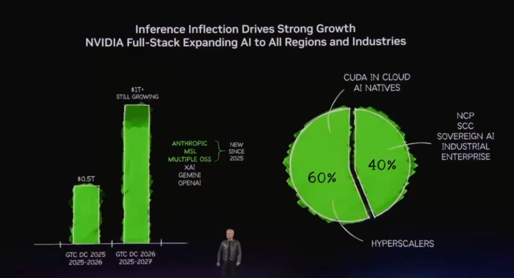 “Simultaneously, we were very pleased last year that Anthropic has come to Nvidia, that MSL, MetaSL (Meta Superintelligence Labs) has chosen Nvidia. And meanwhile, meanwhile, and as a collection, as a group, this represents one-third of the world’s AI compute…