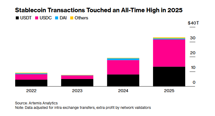 In 2025, stablecoin transaction volumes exploded to $33 trillion and are expected to climb to $56 trillion by 2030.