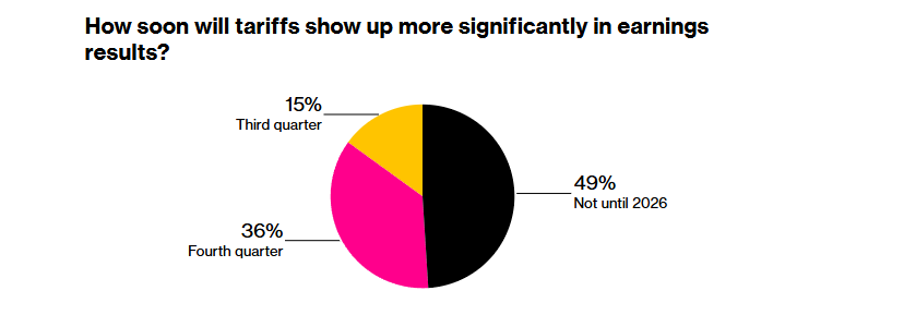 Meanwhile, the survey also shows that about half of the survey respondents believe Trump’s tariffs will impact earnings in 2026. More than a third say they expect tariffs to hit earnings this quarter, while 15% believe tariffs have been priced in since Q3 of this year.