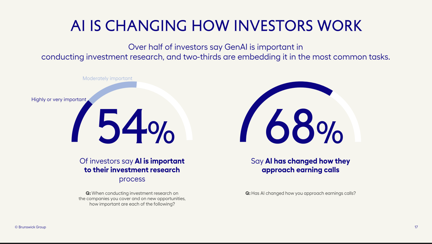According to a Brunswick Group survey of 100 US institutional active equity investors conducted between November 20th and December 4th, 2025, more than half of respondents said AI is important to their investment research process.